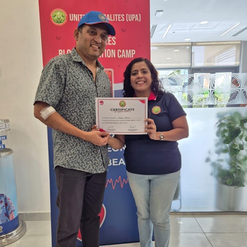 The event was enriched by the presence of our long-time steadfast supporter and well-wisher, Mr. Joseph Mathias, owner of Merit Freight Systems. He commended UPA’s initiative in organizing such meaningful events. The success of this year’s drive was made possible through the unwavering support of UPA members, donors, and DHA staff. Current President of UPA, Ms. Sweeny Dsouza and Founder President, Mr. Michael Castelino, thanked and gave away the appreciation certificate for the donors. UPA sincerely thanks Mr. Bala Salian, a dedicated social welfare coordinator at DHA, for his invaluable support in organizing this blood donation drive. The association extends its heartfelt gratitude to all participants and looks forward to organizing more such initiatives in the future.